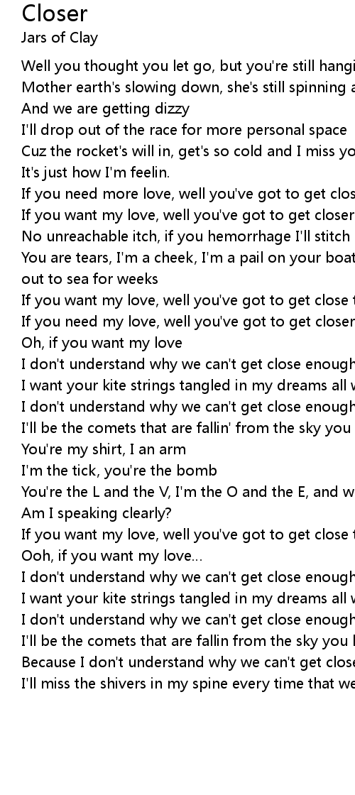 | If you need my love, well you've got to get closer to me | |
