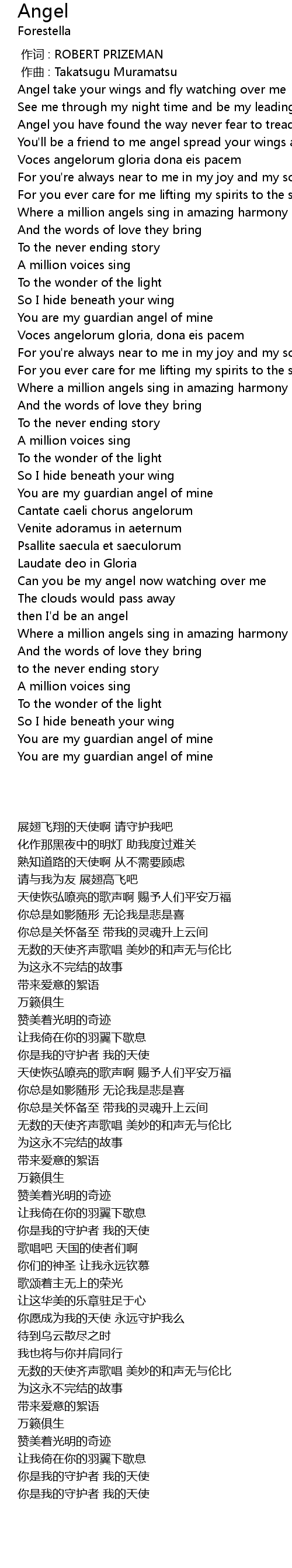 | [00:42.415] | Angel take your wings and fly watching over me |