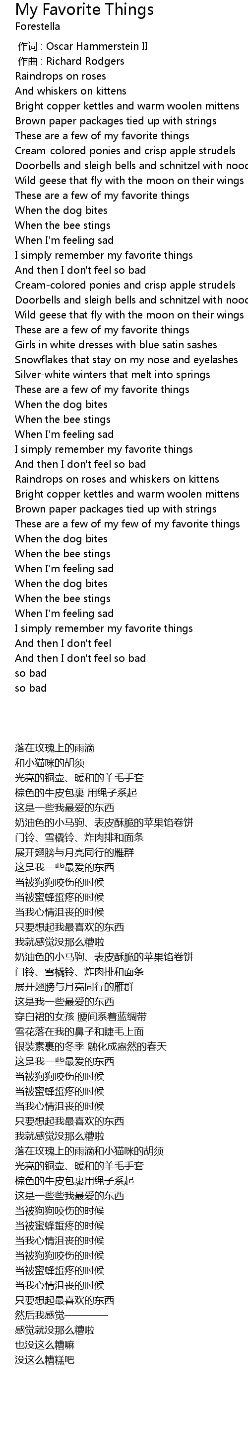 | 歌曲 | My Favorite Things |