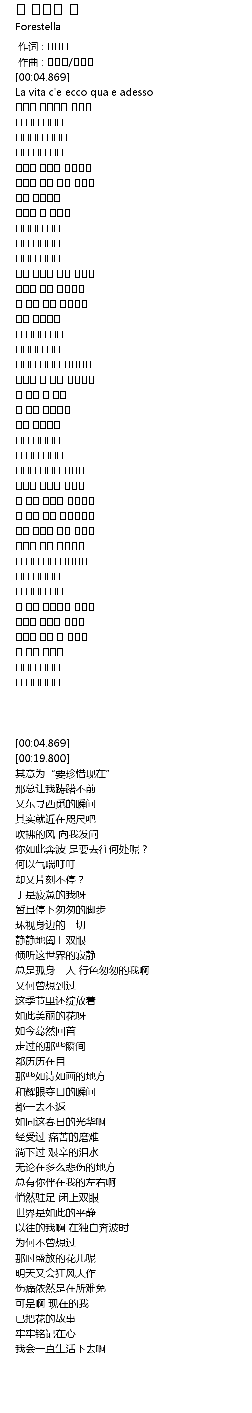 | [00:19.800] | La vita c' e ecco qua e adesso |