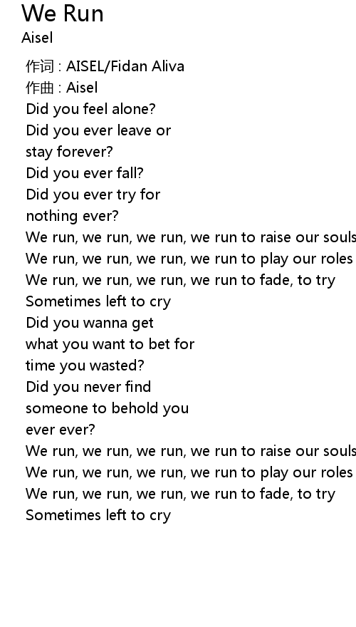 | [01:56.35] | We run, we run, we run, we run to fade, to try |