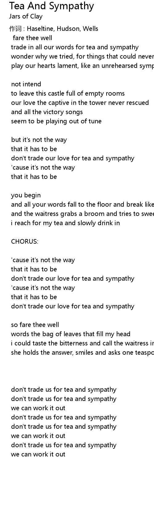 | don't trade our love for tea and sympathy | |