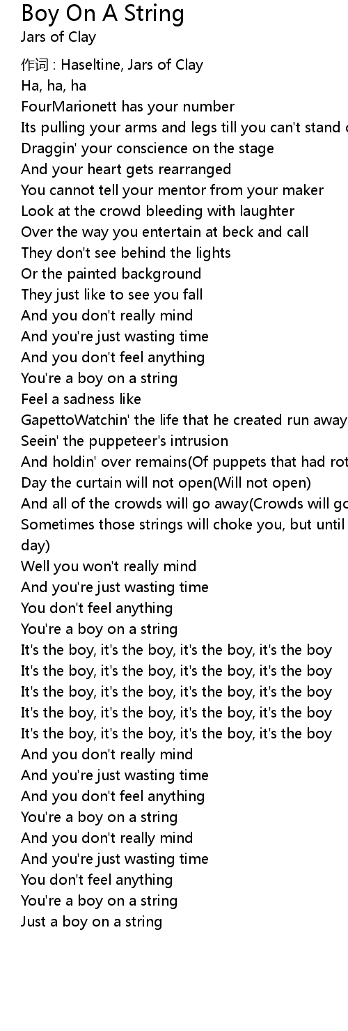 | Sometimes those strings will choke you, but until that day(Sometime)(Until that day) | |