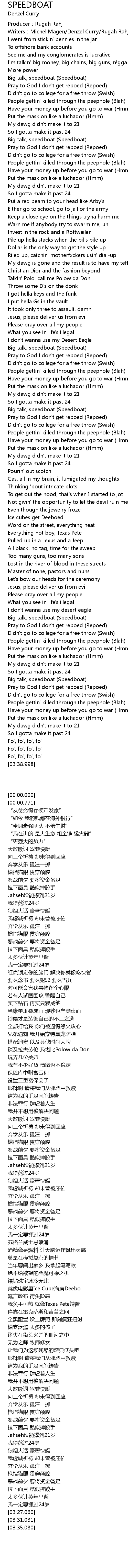 | [00:31.413] | Big talk, speedboat (Speedboat) |