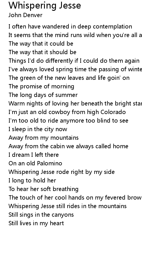 Whispering Jesse rode right by my side |