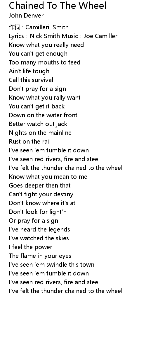 | Lyrics: Nick Smith Music: Joe Camilleri | |