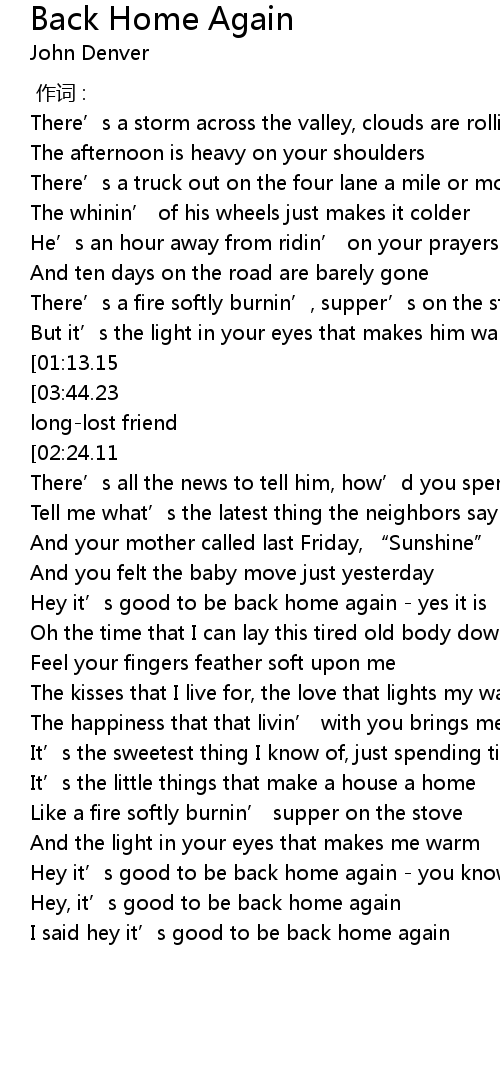| [04:00.22] | Hey it’s good to be back home again - you know it is |