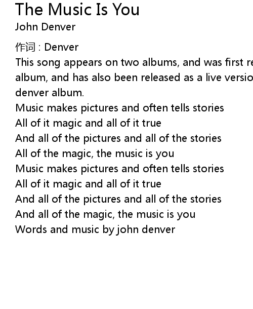 | This song appears on two albums, and was first released on the back home again album, and has also been released as a live version on the an evening with john denver album. | |