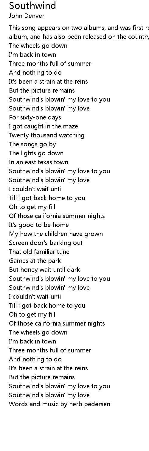 Southwind's blowin' my love to you |