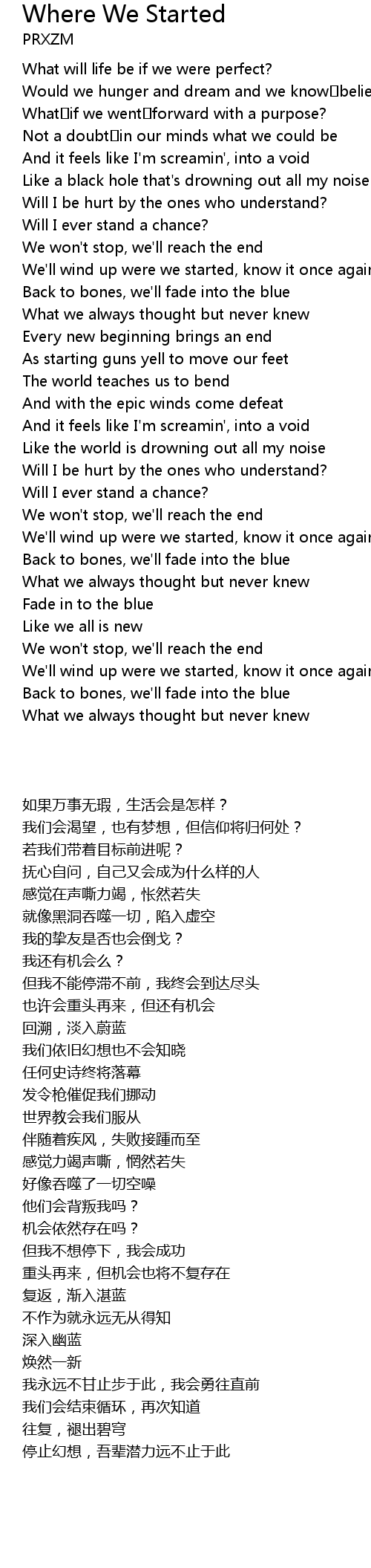 | 歌曲 | Where We Started |