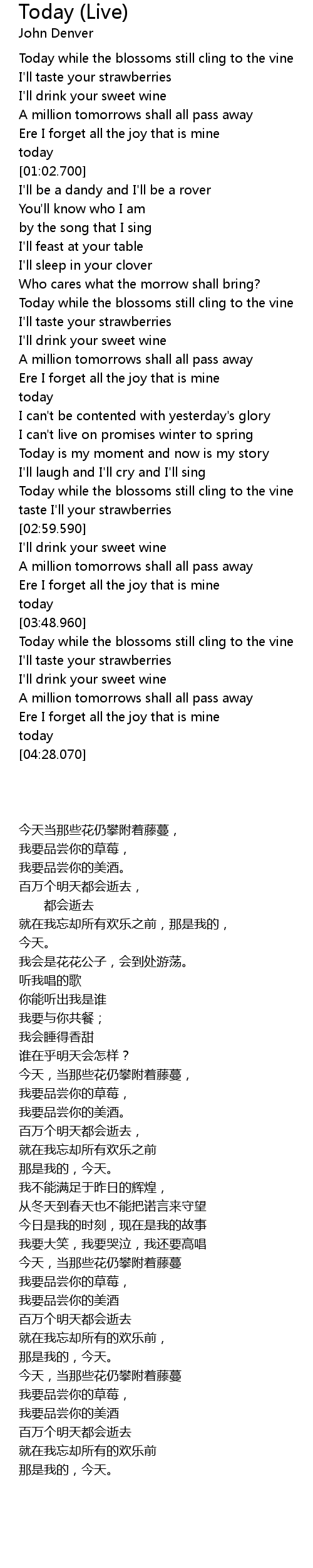 Today while the blossoms still cling to the vine |