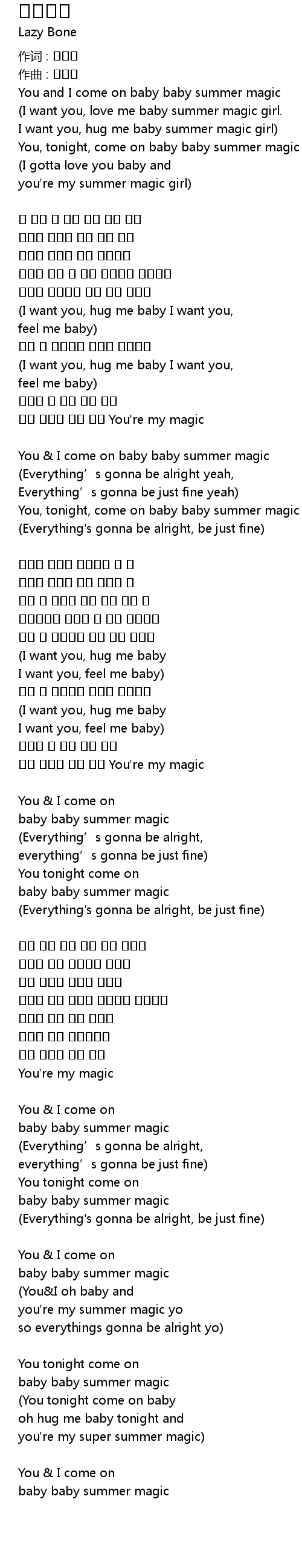 썸머매직 歌词