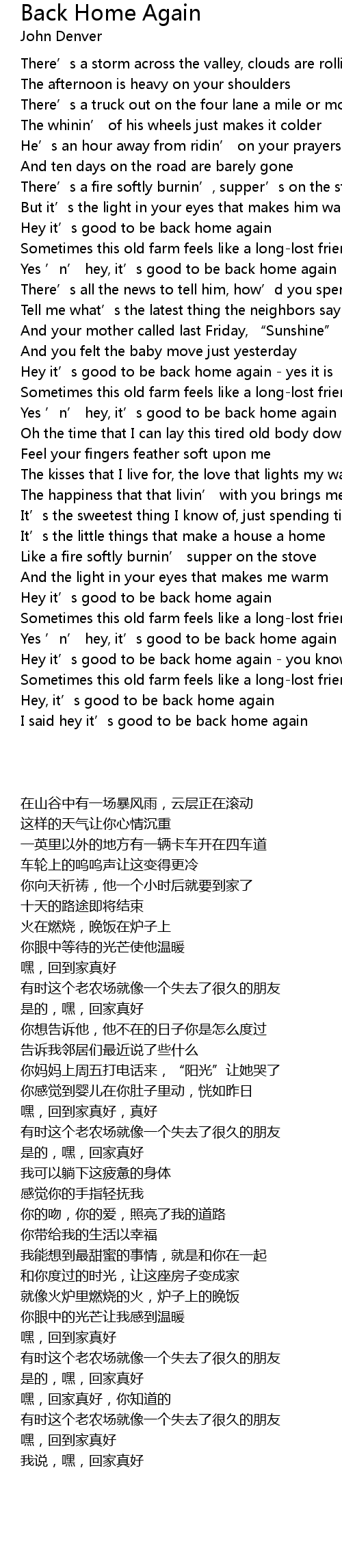 | [03:51.19] | Yes ' n' hey, it' s good to be back home again |
