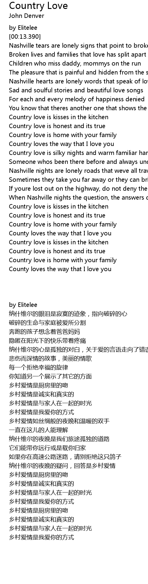 Country love is honest and its true |