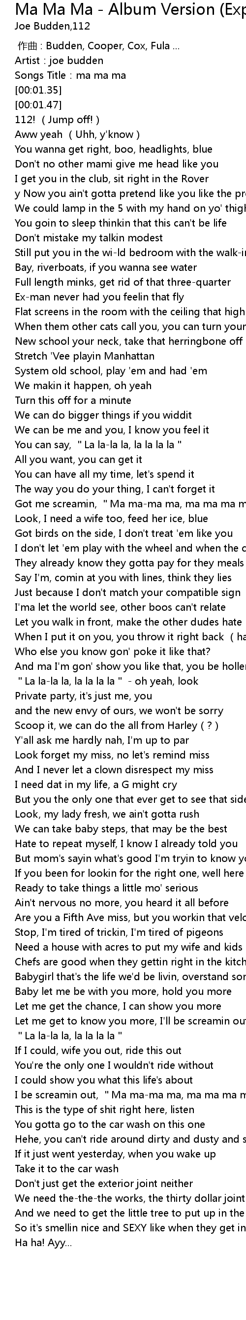 | 歌曲 | Ma Ma Ma - Album Version (Explicit) |