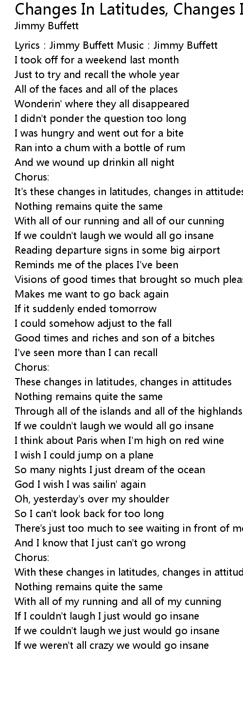 | 歌曲 | Changes In Latitudes, Changes In Attitudes |