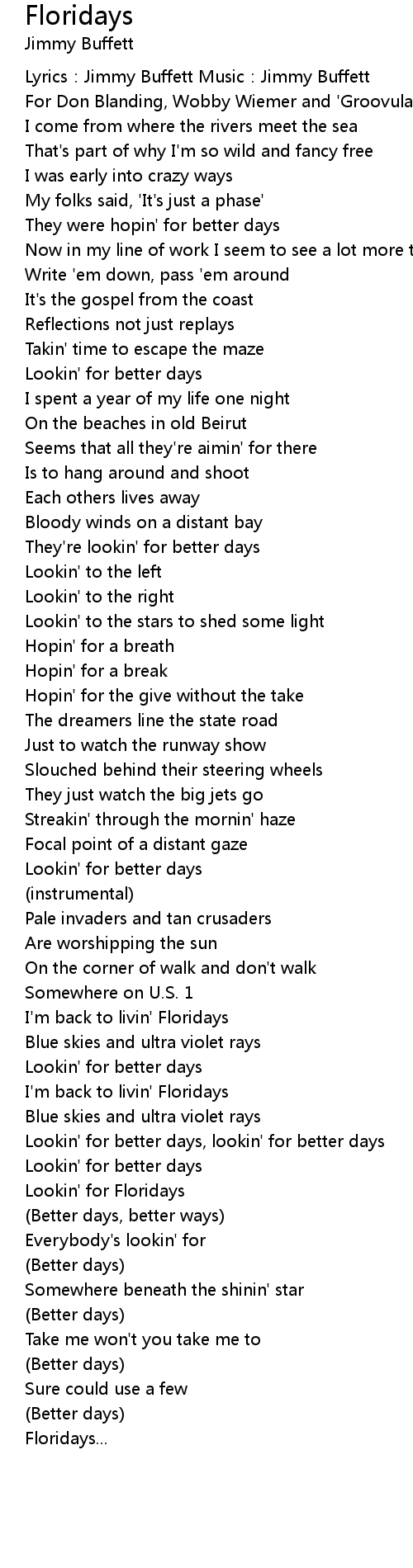 | Lyrics: Jimmy Buffett Music: Jimmy Buffett | |