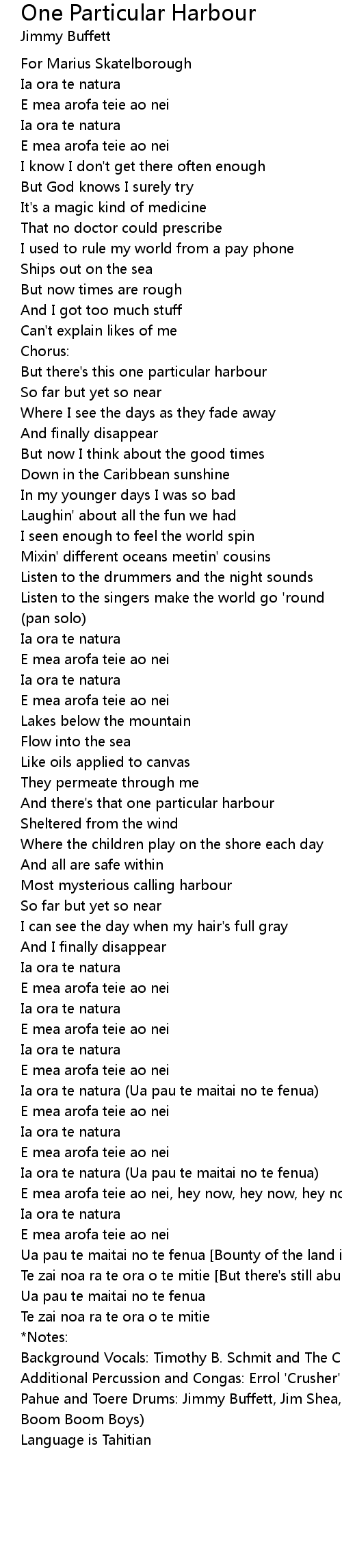 And there's that one particular harbour |