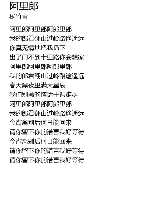 | [01:43.81] | a lǐ láng a lǐ láng ā láng lǐ láng |