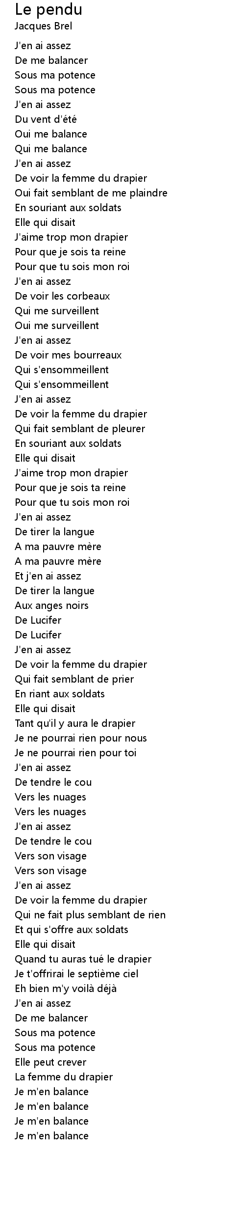 | 歌曲 | Le pendu |