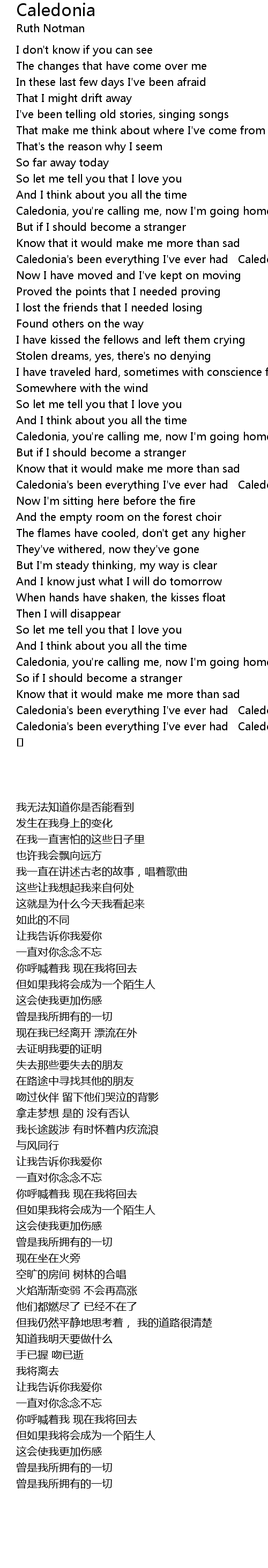 | [01:13.74] | Caledonia's been everything I've ever had Caledonia |