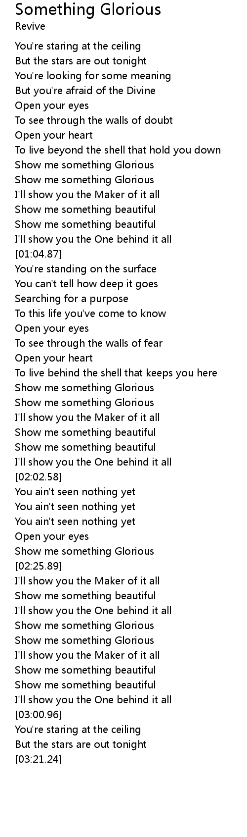 | [01:45.22] | Show me something Glorious |