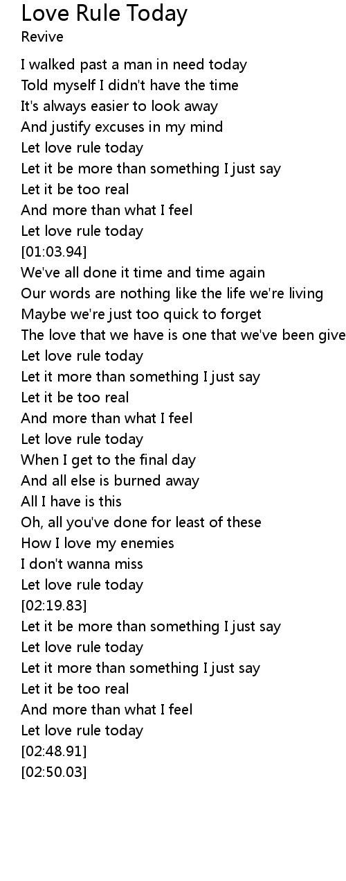 | [02:43.69] | Let love rule today |