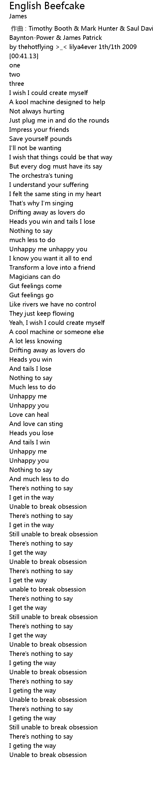 | [00:00.00] | zuò qǔ : Timothy Booth Mark Hunter Saul Davies David John BayntonPower James Patrick |