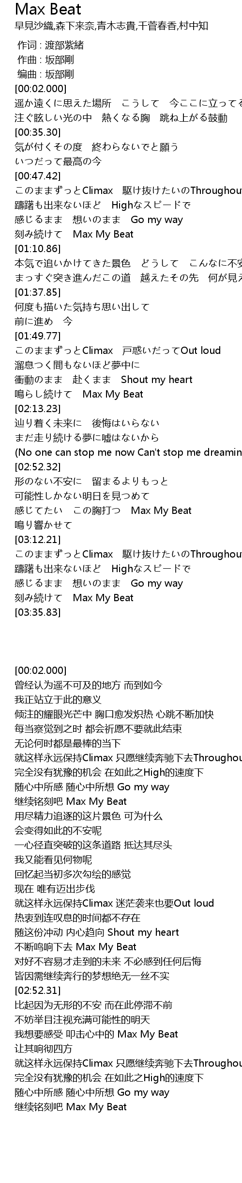 | [03:02.65] | 感じてたい この胸打つ Max My Beat |