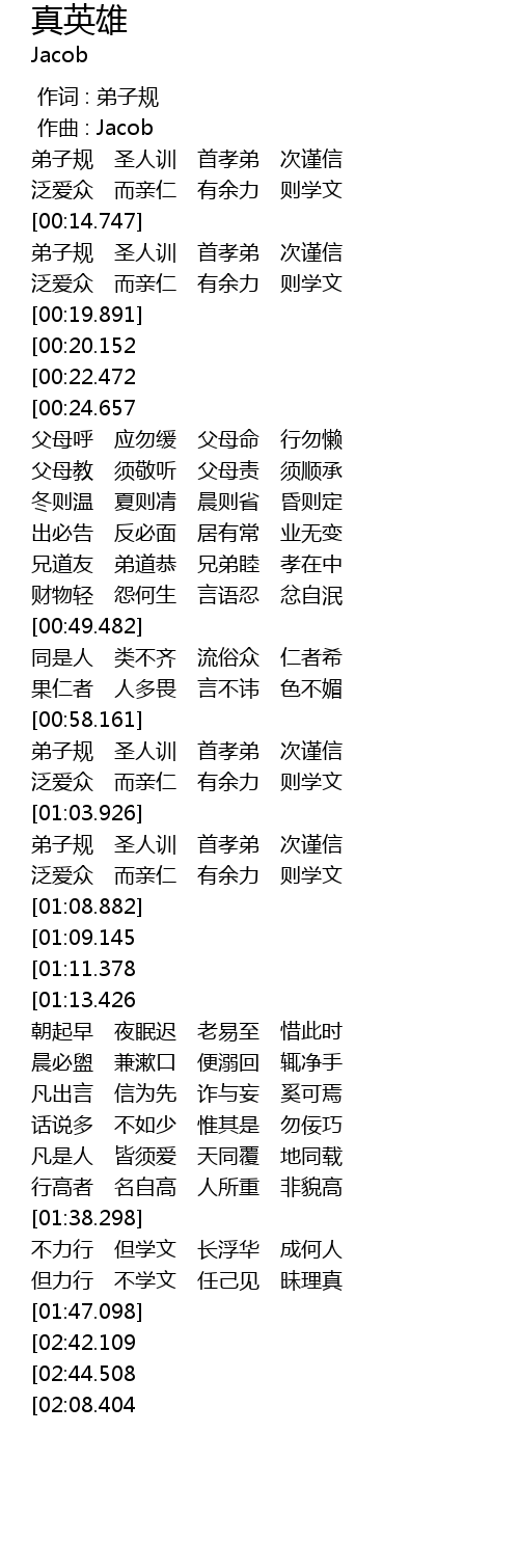 | [00:24.831][00:20.152] | dì zǐ guī shèng rén xùn shǒu xiào dì cì jǐn xìn |