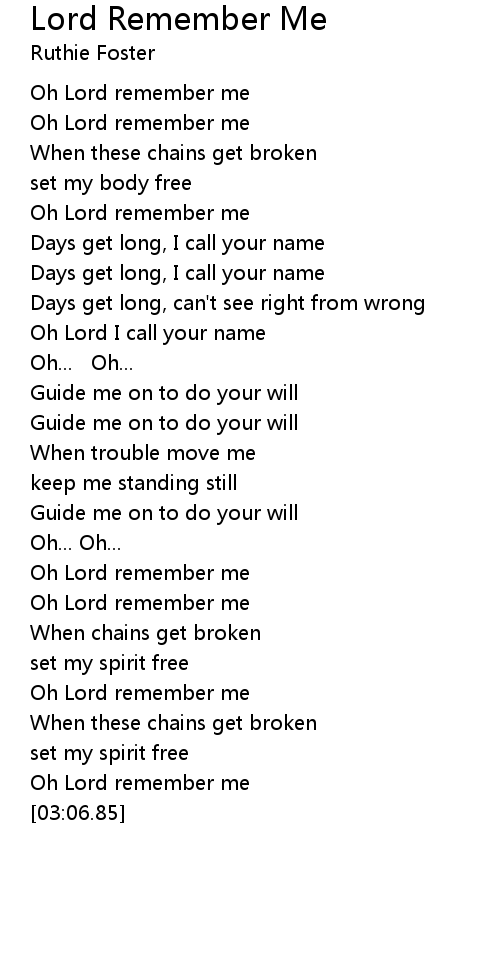 Oh Lord remember me |