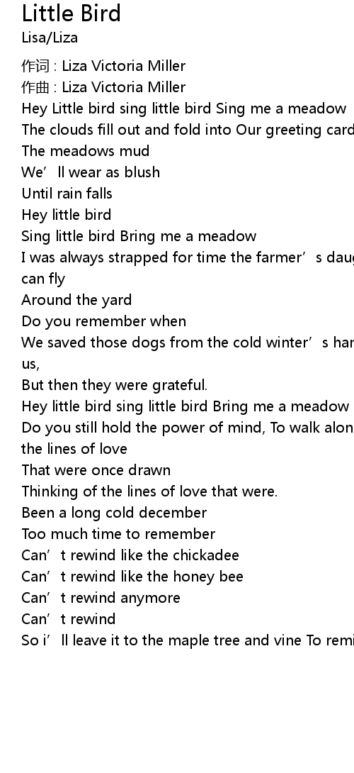 | Hey Little bird sing little bird Sing me a meadow | |