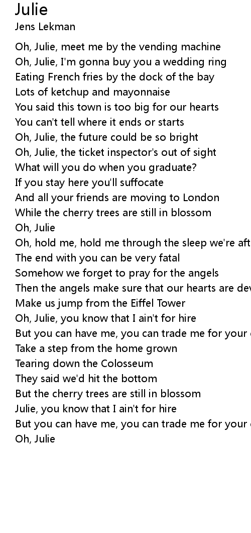 Oh, Julie, I'm gonna buy you a wedding ring |
