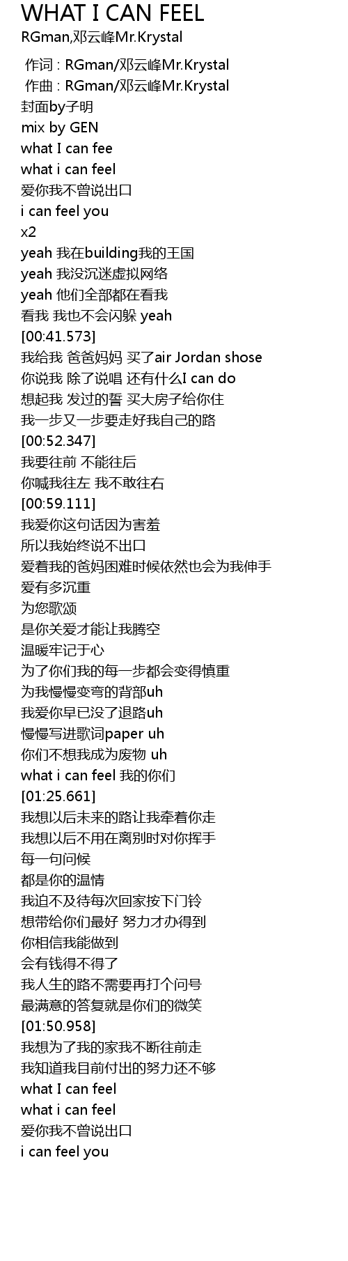 | [00:01.000] | zuo qu : RGman deng yun feng Mr. Krystal |