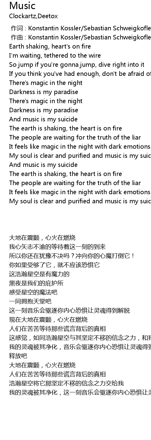 | [02:34.38] | My soul is clear and purified and music is my suicide |