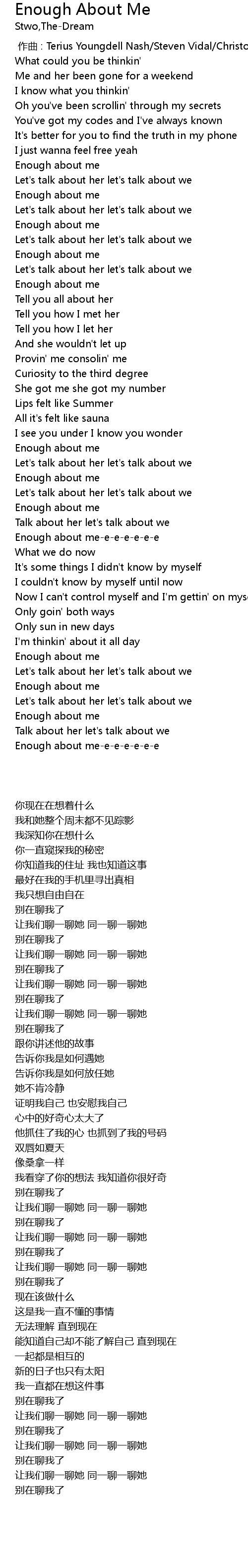 | [02:00.73] | Enough about me-e-e-e-e-e-e |