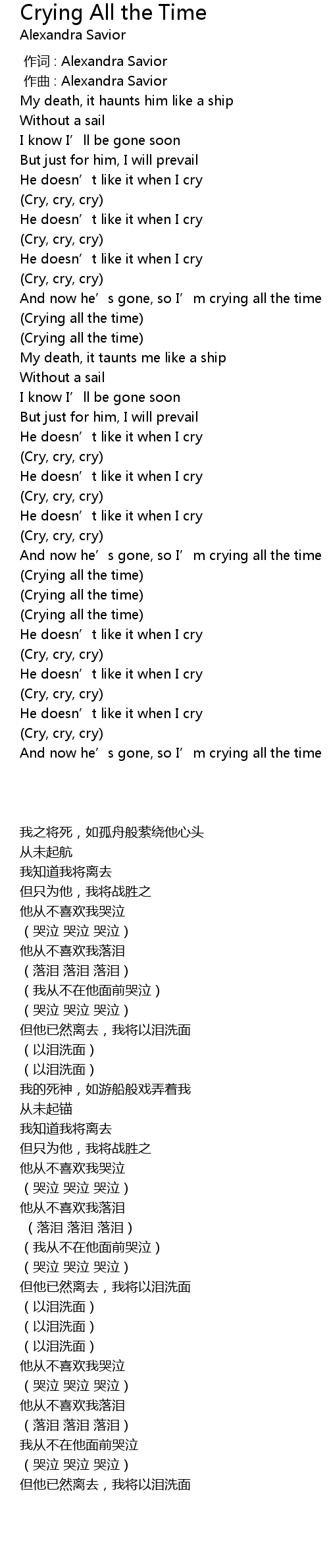 | [01:30.787] | Crying all the time |