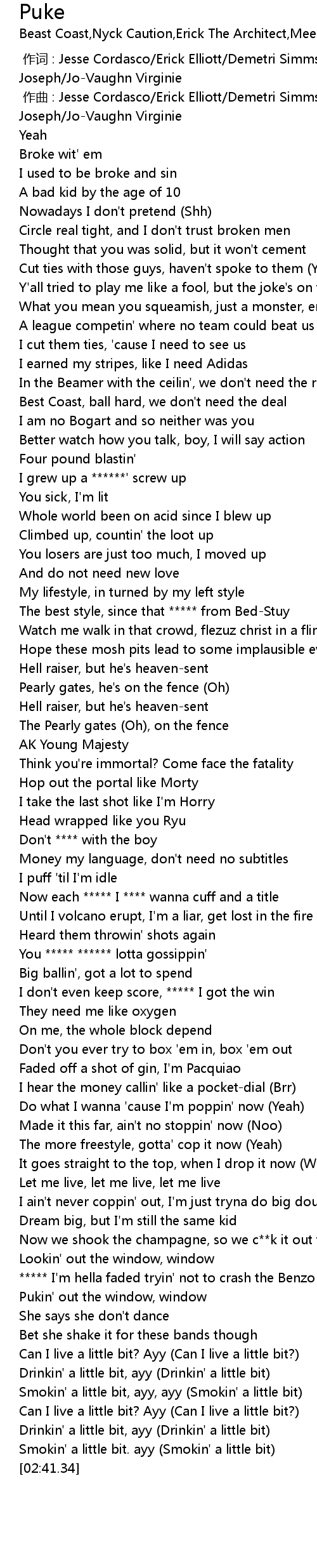 | [02:36.43] | Smokin' a little bit. ayy Smokin' a little bit |