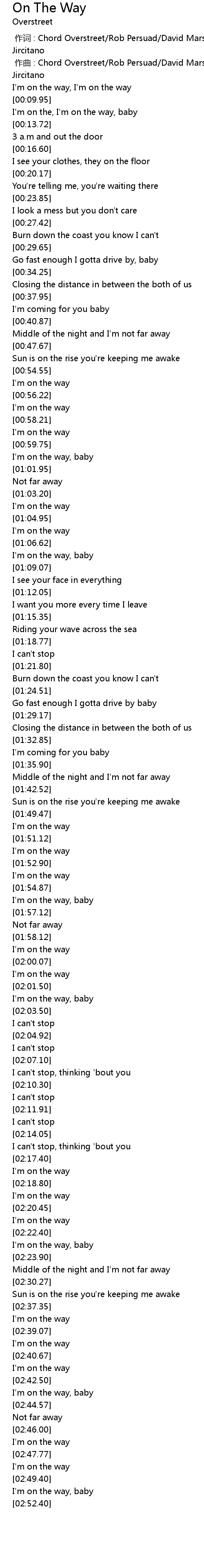 | [02:00.32] | I'm on the way |