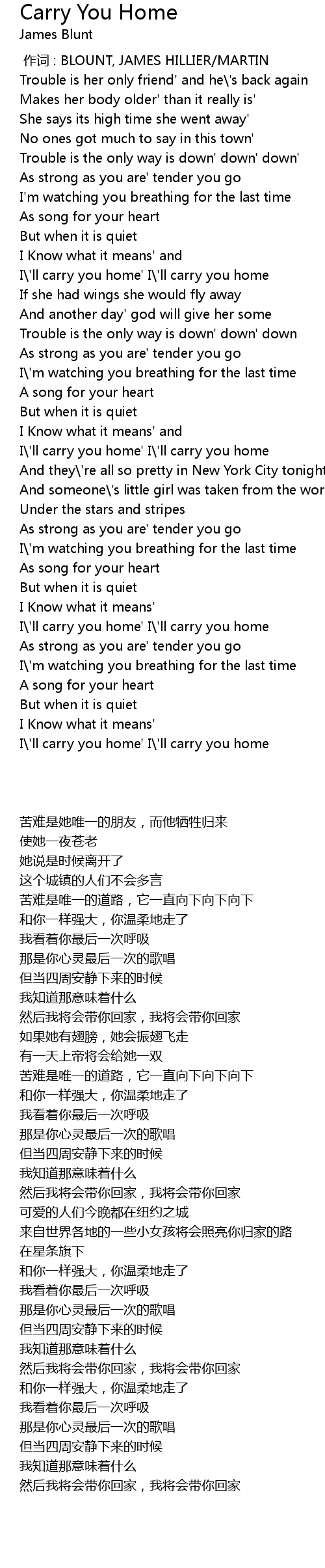 | [03:23.860] | I\'ll carry you home' I\'ll carry you home |