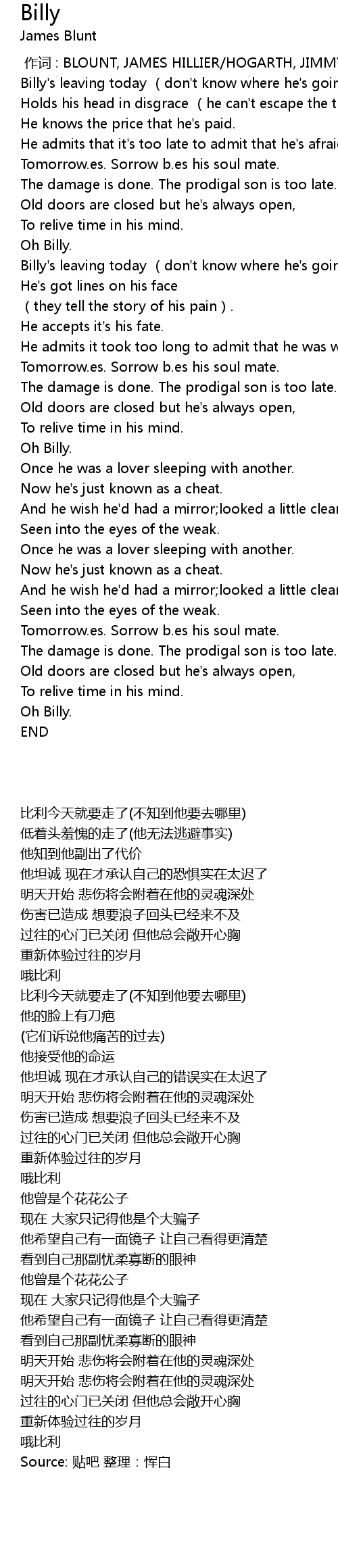 | [00:14.500] | 比利今天就要走了(不知到他要去哪里) |