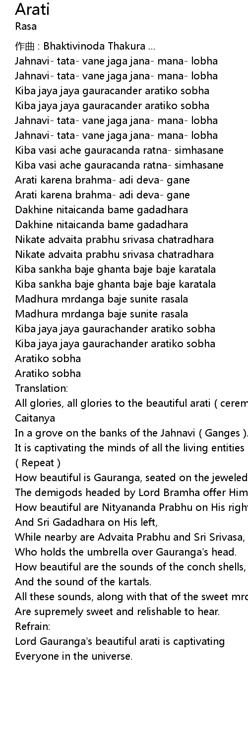 | Arati karena brahma adi deva gane | |