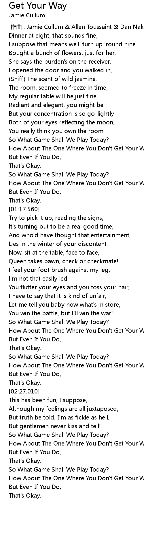 | [02:15.020] | How About The One Where You Don' t Get Your Way? |