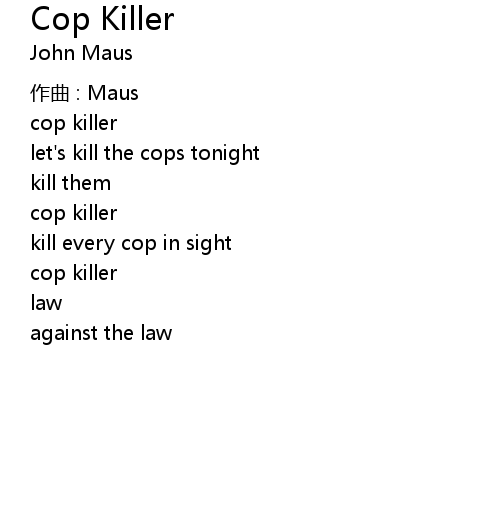 | 歌曲 | Cop Killer |