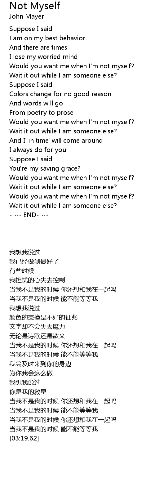 | [01:15.15] | Would you want me when I' m not myself? |