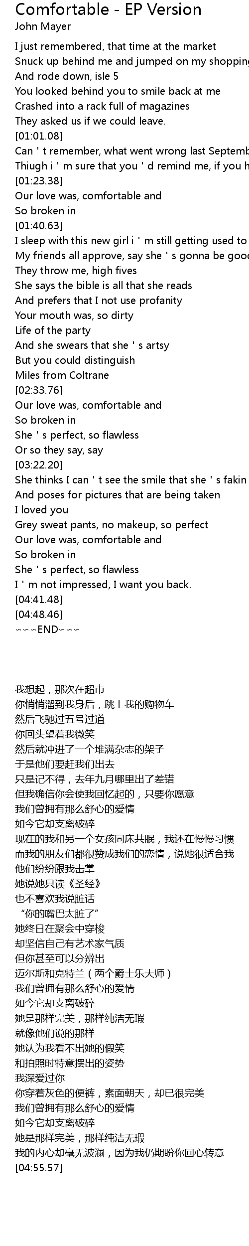 | [03:43.72] | Grey sweat pants, no makeup, so perfect |