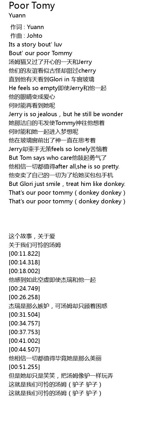 | [00:57.998] | 这就是我们可怜的汤姆(驴子 驴子) |