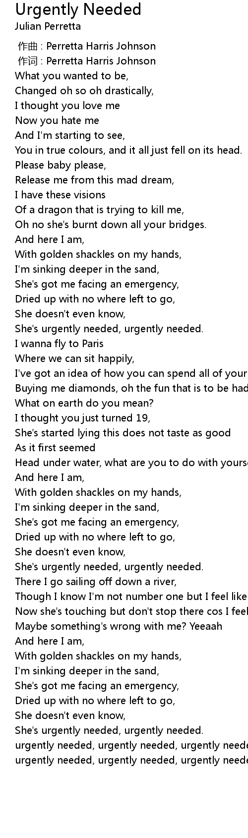 | [03:26.90] | urgently needed, urgently needed, urgently needed, |