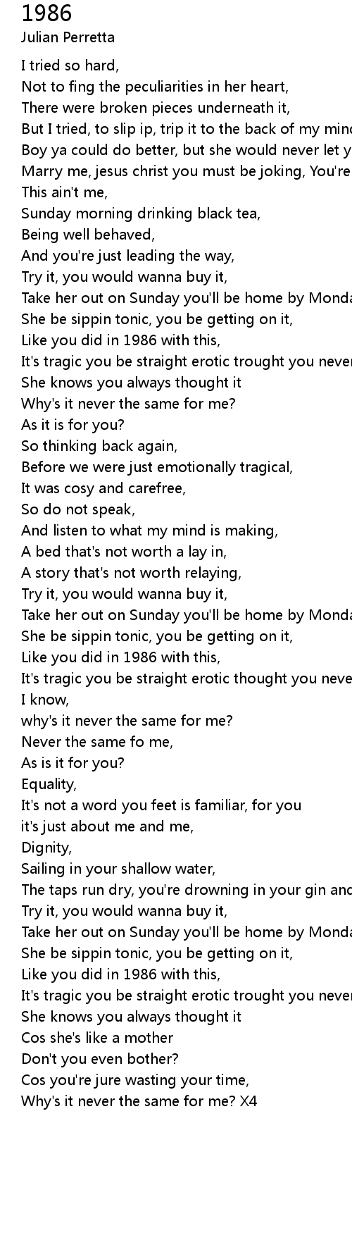 Why's it never the same for me? |