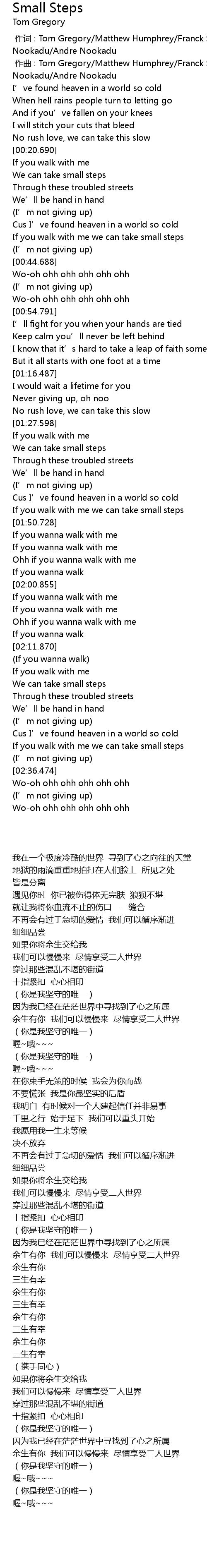| 歌曲 | Small Steps |